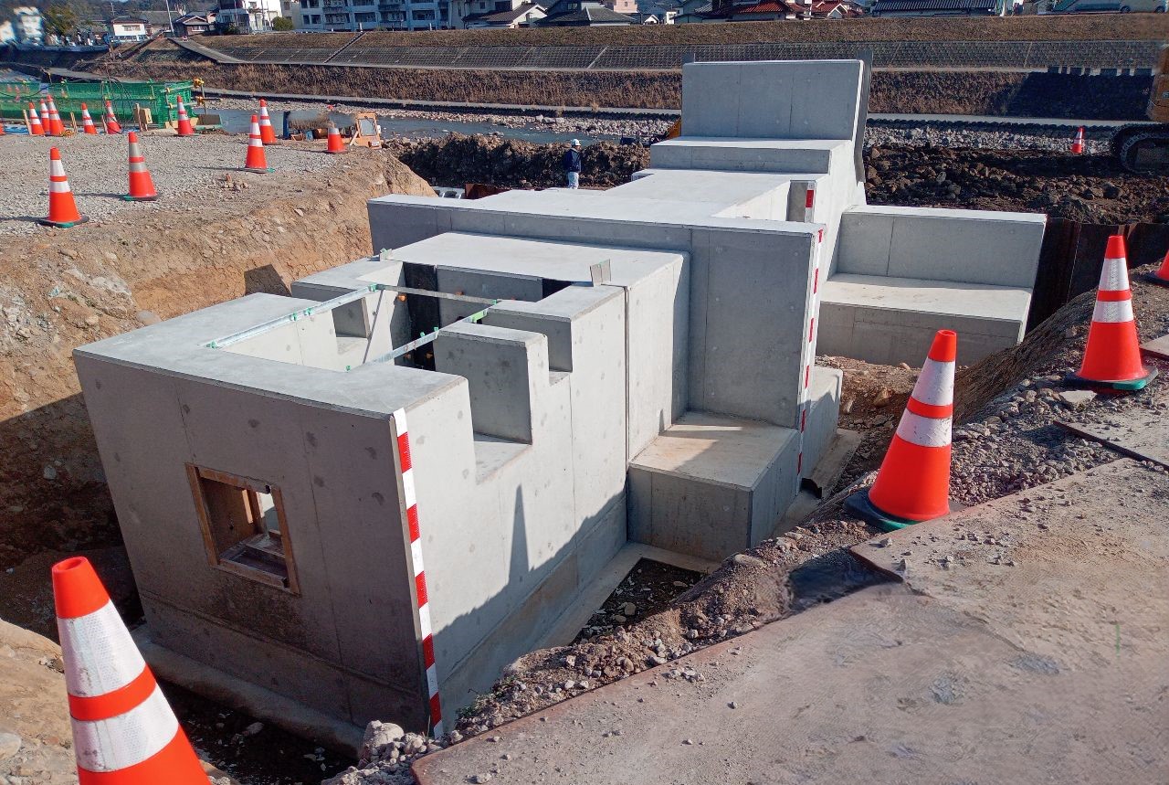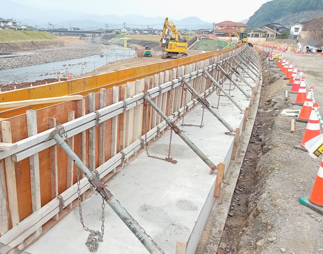 「護岸工事 型枠完成!」